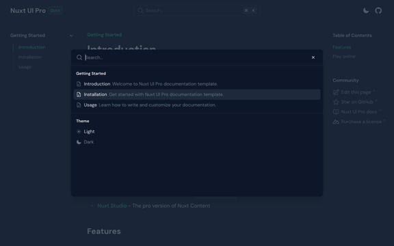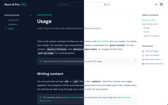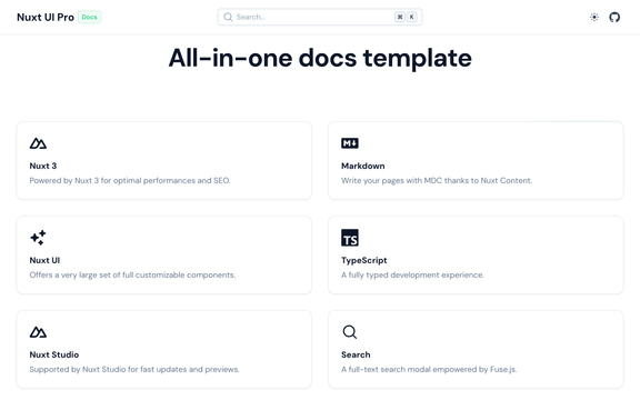 A ready-to-use documentation template integrated with Nuxt Studio. You can start writing your docs right away inside the content/ directory.
